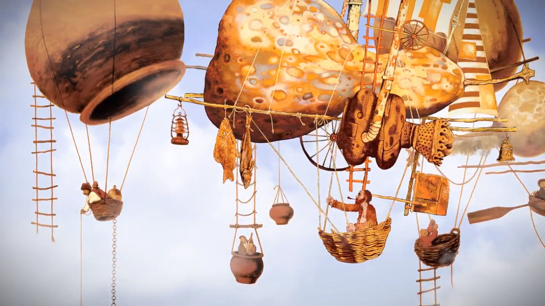 Что общего у этой авиационной компании и художника Сергея Воржева? Ответ мы найдём на первой же странице книги: «Во-первых, многолетняя дружба, благодаря которой во многих авиационных кабинетах появились живописные работы с милыми для взора лётчиков сюжетами: фантастическими летательными аппаратами и героями, нарушающими законы гравитации. Во-вторых, огромная любовь к небу. У лётчиков холст шире и размах кисти небывалый, зато у художника Вселенная не имеет границ… Авиаторы преобразовывают ландшафт, спасают Землю от катаклизмов, а оказавшихся в беде людей – от неминуемой, казалось бы, гибели. Художники воспевают и преумножают красоту мира. Герои картин Воржева – простые мужики, возведенные в ранг Ангелов, и гимн компании "ПАНХ" почти об этом: