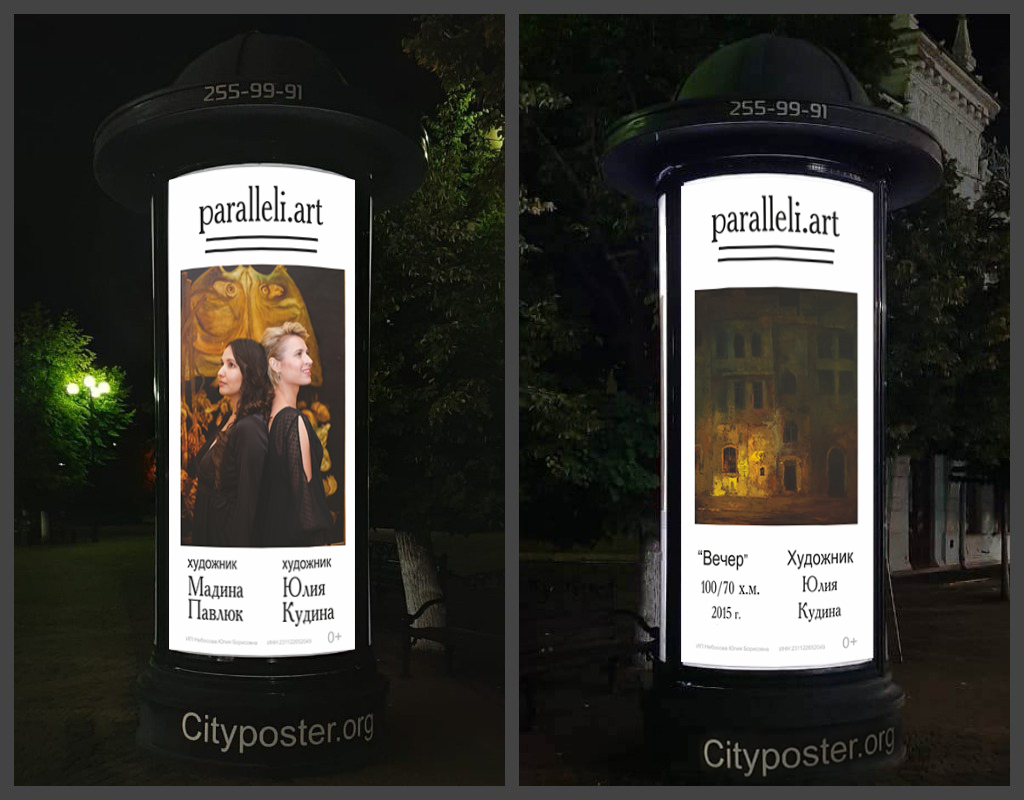В этот сложный период и родилась идея организовать выставку под открытым небом. Информационным партнёром арт-проекта «Параллели» выступил Рекламный дом Кубани. В течение месяца на афишных стендах кубанской столицы можно будет увидеть репродукции двенадцати картин художниц Юлии Кудиной и Мадины Павлюк. Причём увидеть в любое удобное время дня и ночи без угрозы заражения коронавирусом. Стенды расположены на улицах 1-го Мая, Академика Лукьяненко, Уральской и Сормовской.